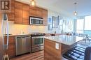 Exceptional value with this luxury one-bedroom plus den in Tridel's Viking Lane Community. The newest of the buildings (15Viking Lane) this unit boasts the following outstanding features: 650 sq ft of living space, premium south-facing exposure with lake view, open-concept kitchen with granite counters and stainless steel appliances, high ceilings, excellent size bedroom, large ensuite laundry, open balcony with north exposure and PARKING. **EXTRAS** Building amenities include: 24/7 concierge, visitor parking, indoor pool, well-equipped gym, outdoor patio and BBQ area, Party Room and a well-managed building and board. (id:7525)