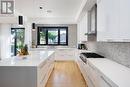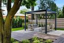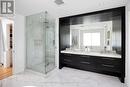 Nestled in one of West Toronto's most sought-after communities, this masterfully custom-crafted estate features 5 bedrooms, 7 bathrooms, and over 6,000 square feet of bespoke living space. As you step through the front entrance, you are welcomed by a grand foyer with seemingly endless sightlines extending through to the backyard, setting the tone for the luxurious experience that awaits. At the heart of the main level lies an incredible kitchen with custom cabinetry, premium Thermador appliances, and a family-sized island. Adjacent to the kitchen, the butler's pantry leads you to the grand dining room, perfect for entertaining. The open-plan kitchen and living area boasts a feature wall with a TV niche, linear gas fireplace, and built-in storage, creating a warm and inviting space for gatherings. Step through the rear garden doors and prepare to be enchanted by the meticulously designed backyard. This outdoor oasis offers multiple areas for al fresco dining, a relaxing retreat by the outdoor fireplace under a custom pergola, and ample space to bask in the sun amidst professionally manicured gardens. It is truly an oasis inspired by luxury hotel gardens. The master suite, located at the rear of the home, features striking vaulted ceilings, a chic 5-piece bathroom, a dressing room, a shoe closet, and a built-in vanity area. The spacious 2nd and 3rd bedrooms share an ensuite bath with a double vanity and separate water closet, while the 4th and 5th bedrooms offer private ensuites, ideal for guests or separate living quarters. The expansive lower level features an open-concept theatre and games room with a 100-inch screen and a 7.1 built-in sound system. Additionally, you'll find a spa-inspired full bathroom, bedroom or den, ample storage areas, laundry room, and a fully equipped mirrored gym/yoga studio. Discover the epitome of luxury living where every detail is designed for comfort, elegance, and style. (id:27)