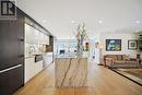 Welcome to Suite 601W at the iconic King's Landing-a masterpiece by celebrated Canadian architect Arthur Erickson, best known for Roy Thomson Hall. Nestled along Toronto's vibrant waterfront, this rare, quiet corner unit has been meticulously renovated, offering a unique blend of architectural prestige and modern luxury. Step through a spacious, elegant foyer into a thoughtfully redesigned home perfect for elevated everyday living and entertaining. The heart of the suite features a gourmet chef's kitchen with a striking 10-ft waterfall island, premium Miele appliances, and custom wine storage-flowing seamlessly into a large open-concept living and dining area. An expansive living room offers the perfect setting to host guests, while the bright solarium provides a private retreat to read, relax, or enjoy a glass of wine. The luxurious primary suite boasts a vast walk-in closet and spa-like ensuite with jetted soaker tub, dual vanities, and private water closet. A full-sized laundry room with built-in storage adds comfort and convenience. Ideally located on the same level as the building's exceptional amenities: indoor salt water pool & whirlpool, sauna, rooftop terrace with BBQs, outdoor pickleball court, state-of-the-art gym, party room, and golf swing practice range. Includes 1 parking space and 1 locker. With 24-hour white-glove concierge service, premier finishes, and a landmark location, Suite 601W is a rare opportunity to live in one of Toronto's most architecturally significant residences. (id:27)